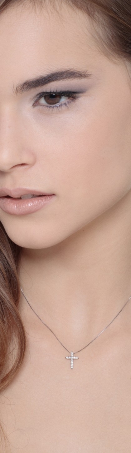 Collar cruz en oro blanco 18k con diamantes