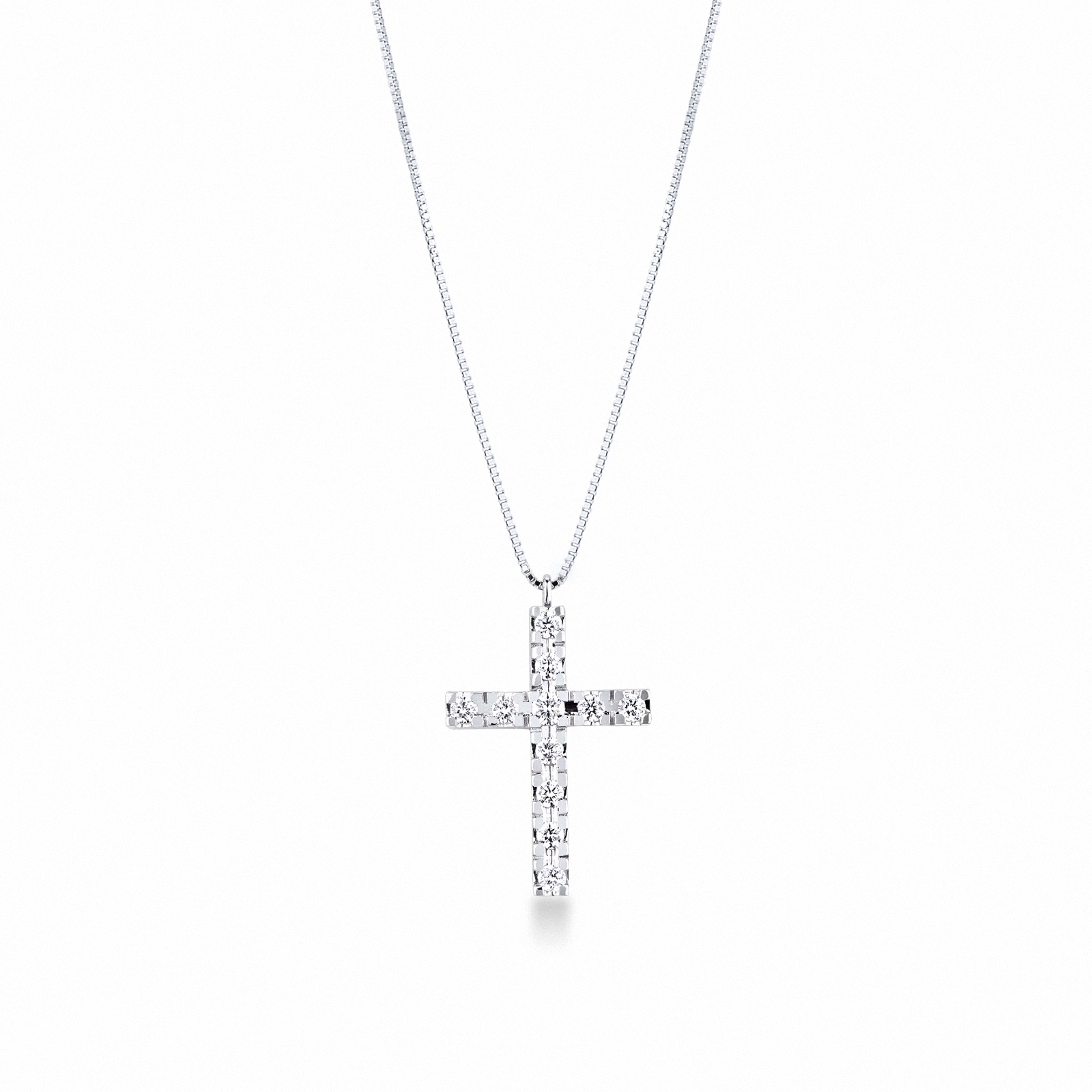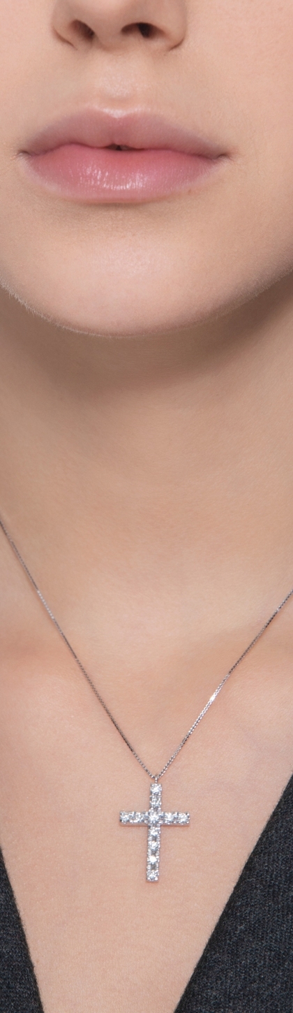 Collar en oro blanco 18k con colgante cruz y diamantes