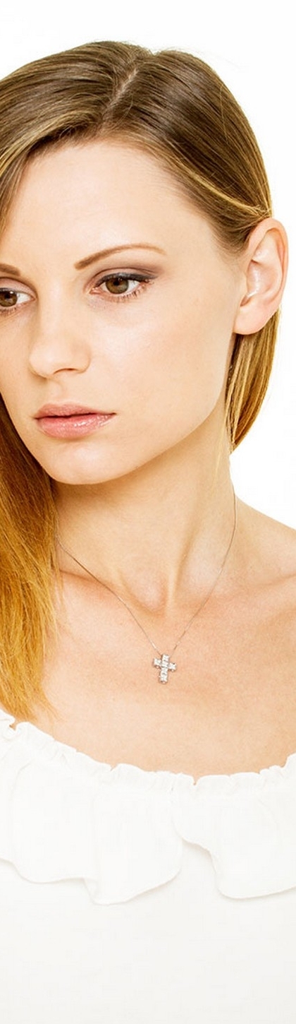 Collar en oro blanco 18k con cruz con brillantes 0.20 ct