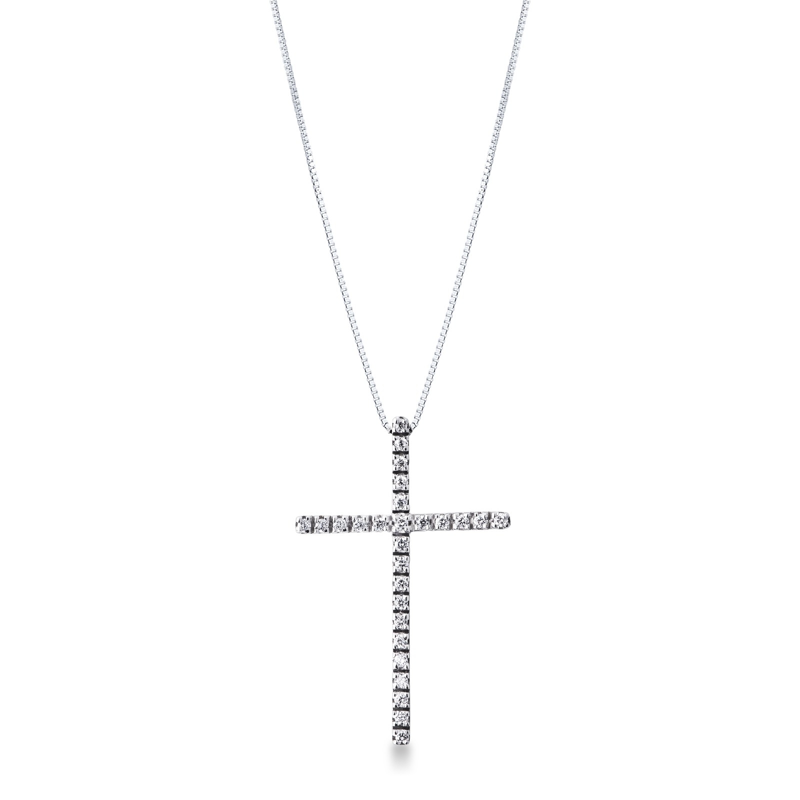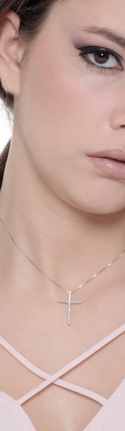 Collar en oro blanco 18k con cruz de diamantes brillantes