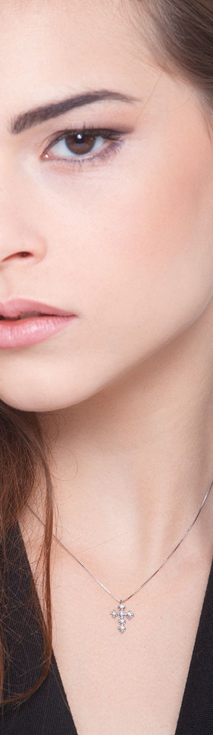 Collar en oro blanco 750 con cruz cuadrada y diamantes