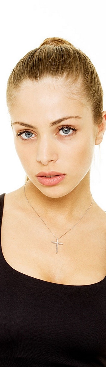 Collar en oro blanco de 18k con colgante de cruz con diamantes