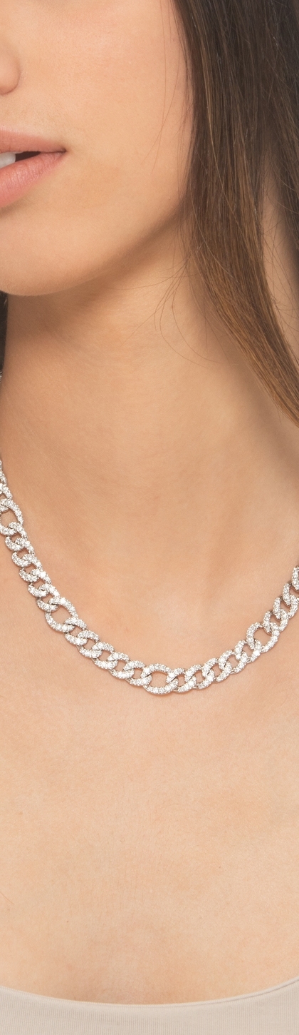 Cadena Cubana en oro rosa de 18 quilates con diamantes