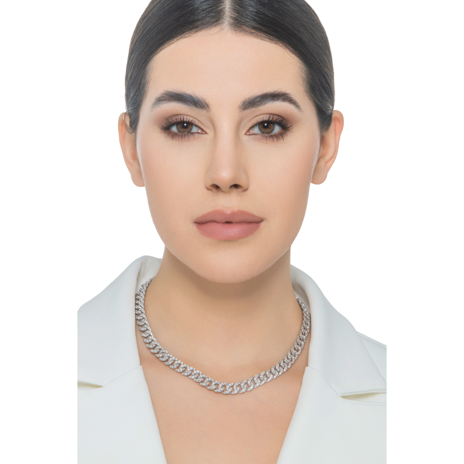 Collar elegante oro blanco 18k estilo groumette con diamantes