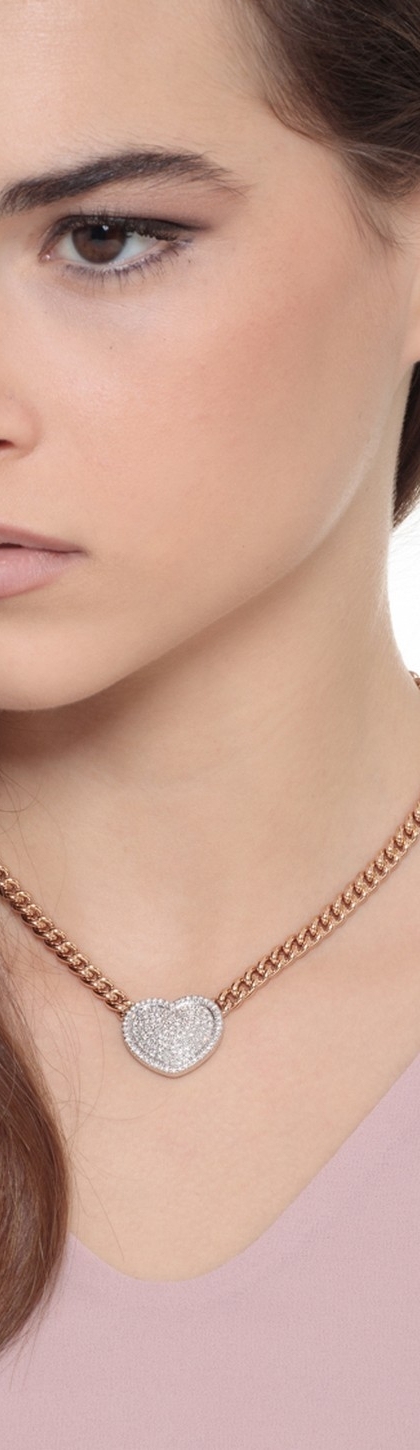 Cadena Cubana en oro rosa de 18 quilates con diamantes