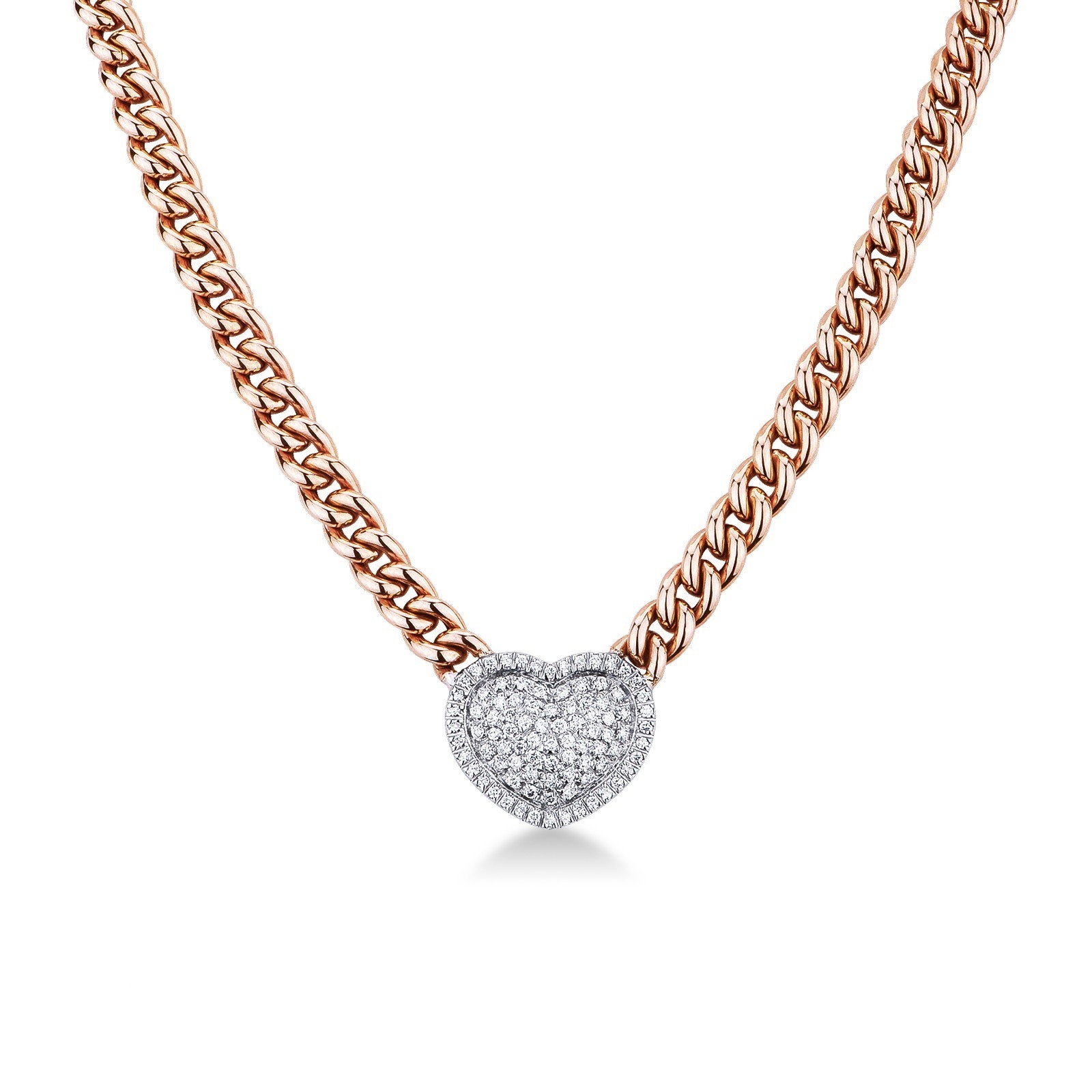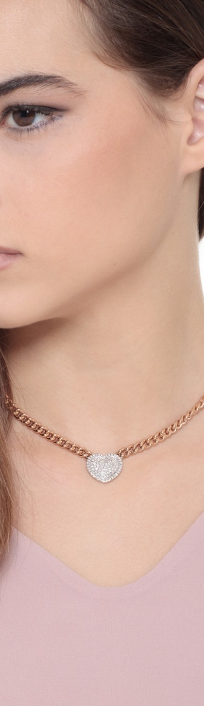 Collar groumette oro rosa 18k con corazón pavé de diamante
