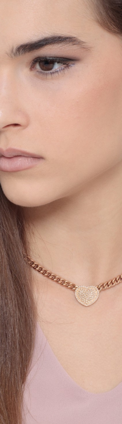 Gargantilla rosa con colgante corazón pavé diamantes oro 18k