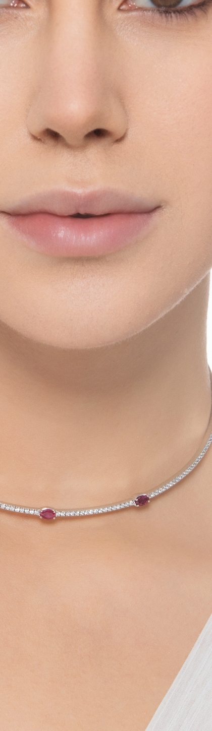 Collar choker oro blanco con rubíes y diamantes