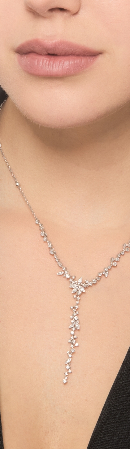 Collar en Y en oro blanco 18k con diamantes en cascada