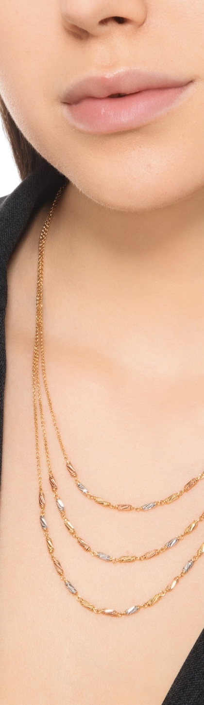 Collar tres hilos oro blanco amarillo y rosa 18k