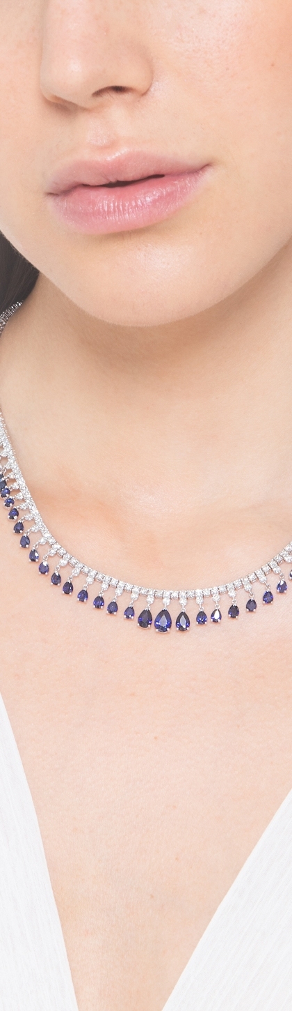 Gargantilla tennis en oro 18k con zafiros azules y diamantes