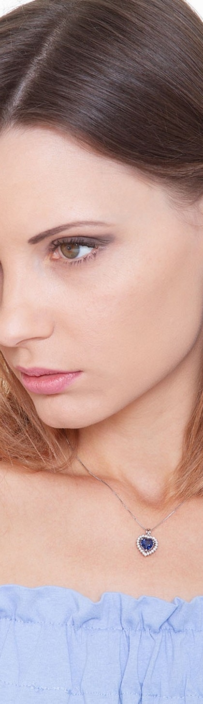 Cadena en oro blanco 18k con colgante corazón de zafiro y diamantes