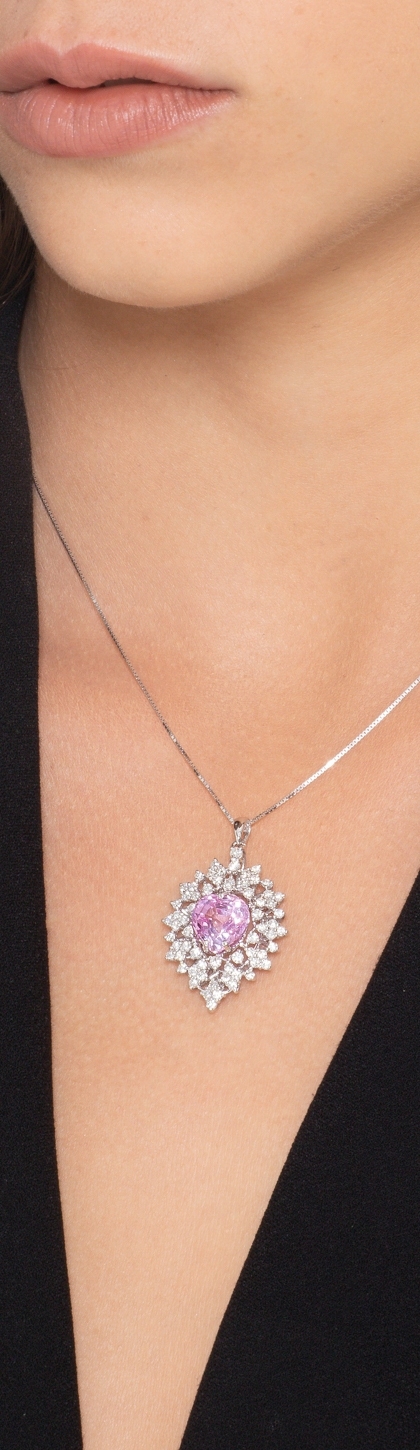 Colgante en oro blanco 18k con zafiro rosa y diamantes