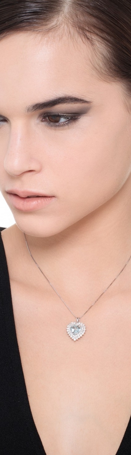 Collar colgante corazón oro blanco 750 aguamarina y doble fila de diamantes