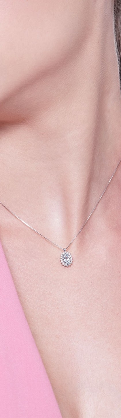 Collar colgante de oro blanco de 18 kilates con halo de diamantes y aguamarina ovalada