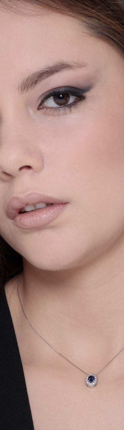 Collar con zafiro azul talla ovalada y diamantes laterales