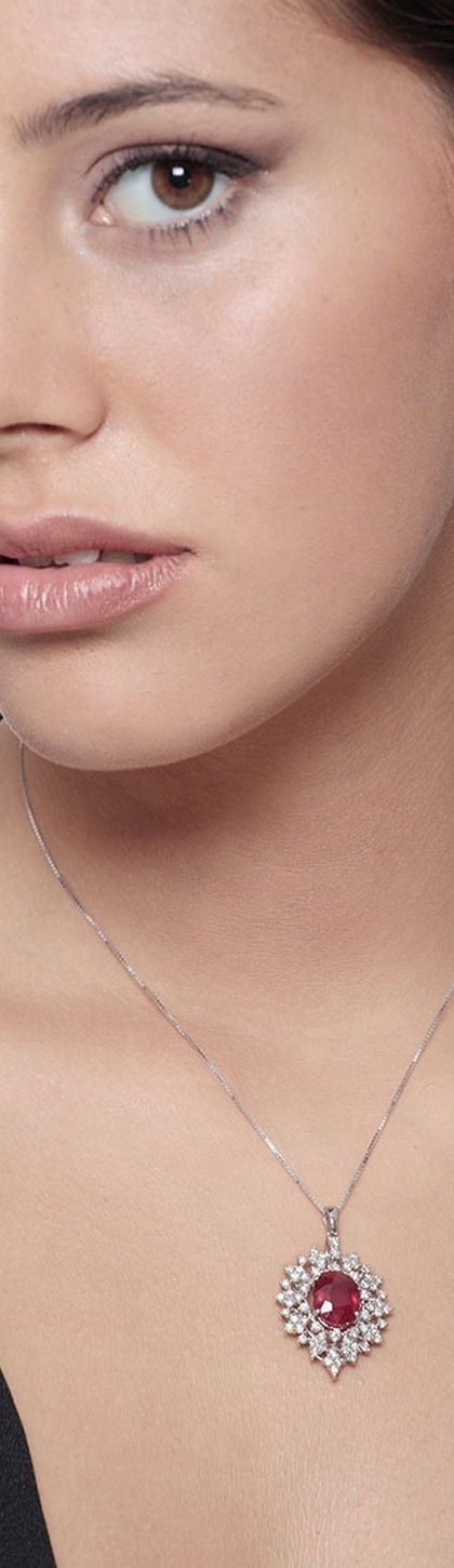 Collar de oro blanco 18k con rubí y halo diamantes