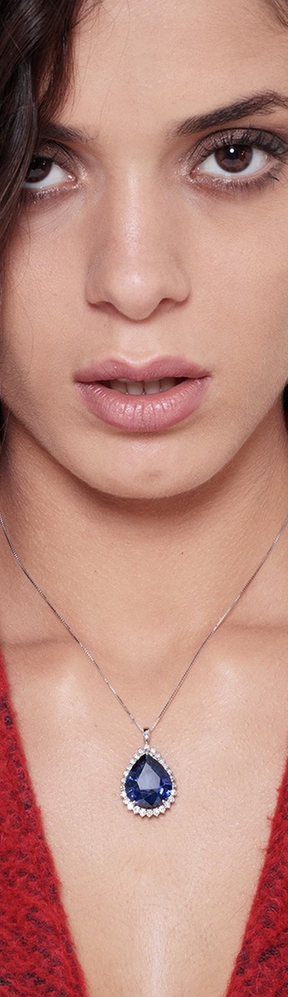 Collar de oro blanco 18k con zafiro azul y 26 brillantes