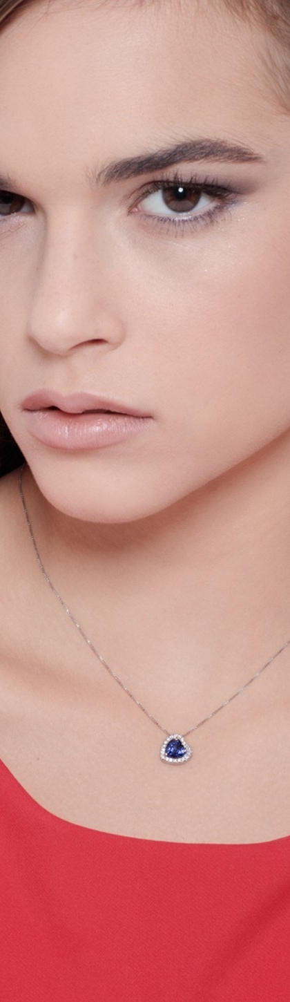 Collar de Oro Blanco de 18k de Zafiro Azul y diamantes