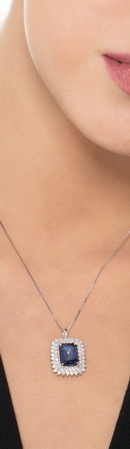 Collar elegante con diamantes brillantes y un zafiro azul central