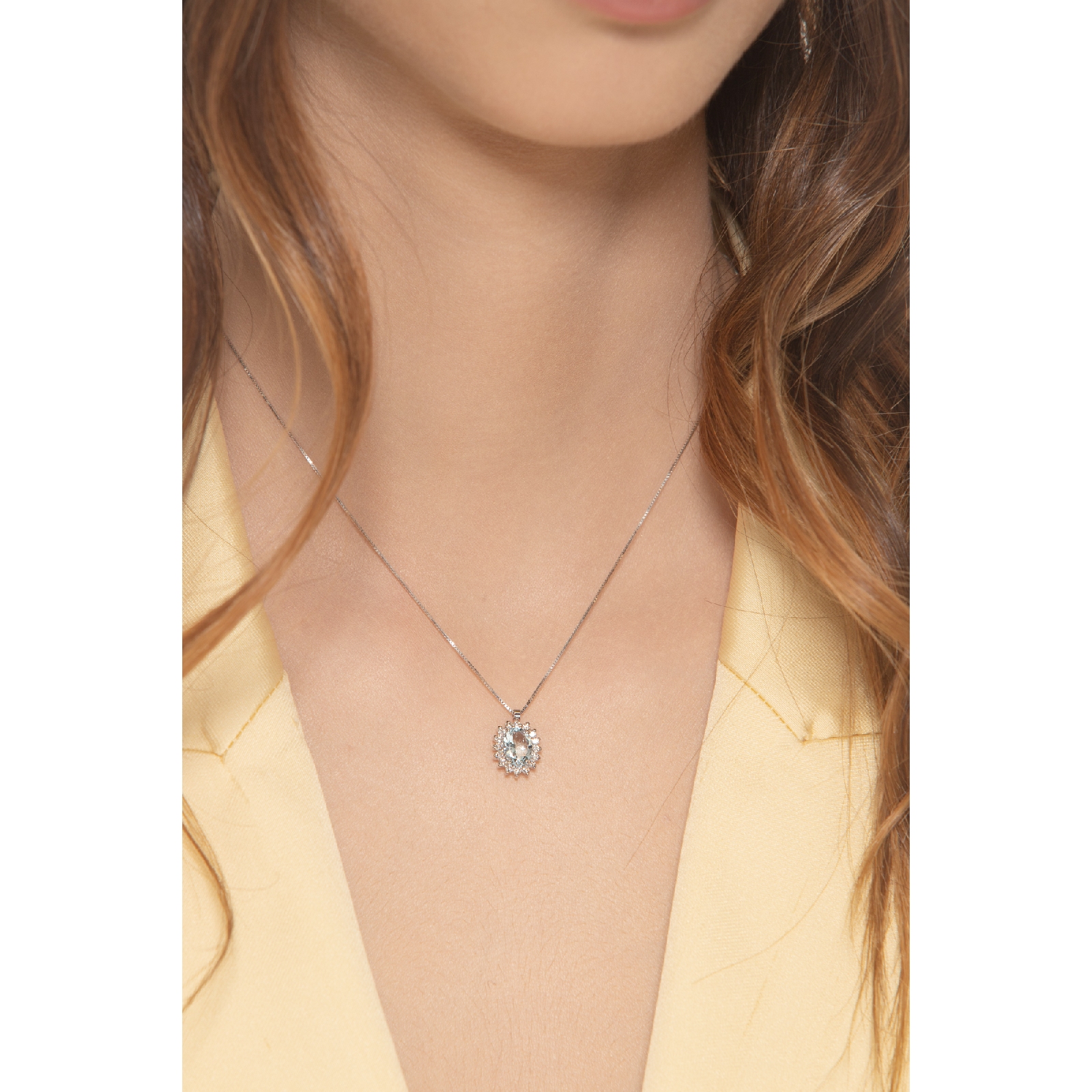 Collar en oro blanco 18k con aguamarina ovalada de 6x8 mm rodeada de diamantes talla brillante color h pureza vs una joya elegante y atemporal