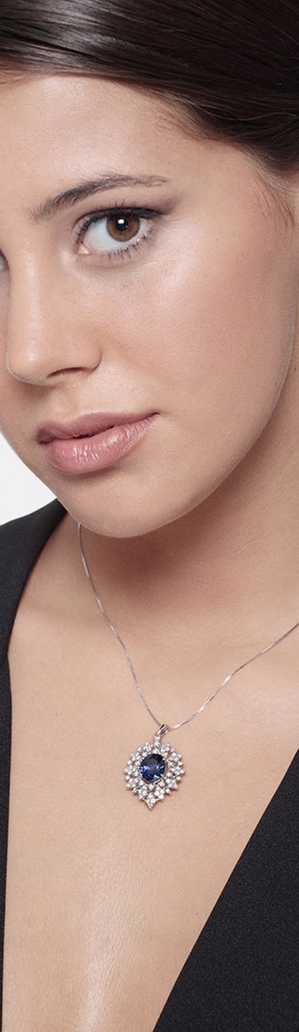 Collar en oro blanco 18k con zafiro azul y diamantes