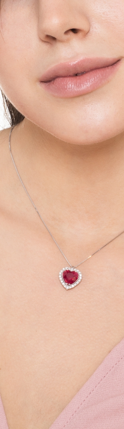 Collar en oro blanco 18k corazón en diamantes y rubí central