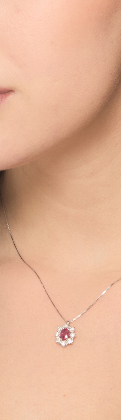 Collar en oro blanco de 18k con un rubí central rodeado de diamantes