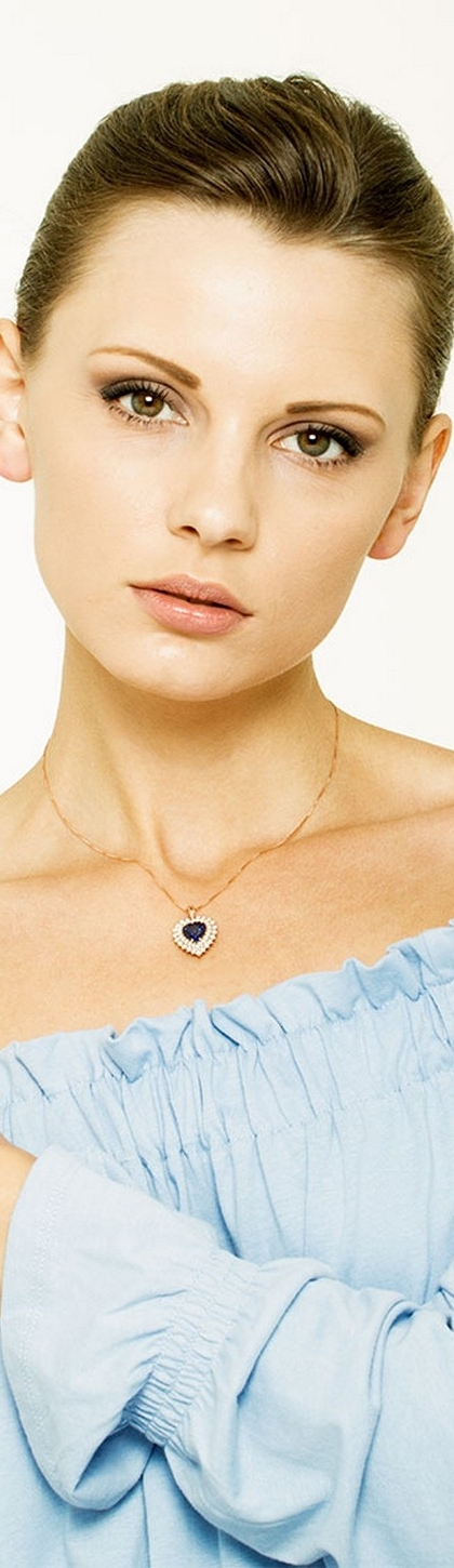 Collar en oro rosa 18k con zafiro azul y diamantes