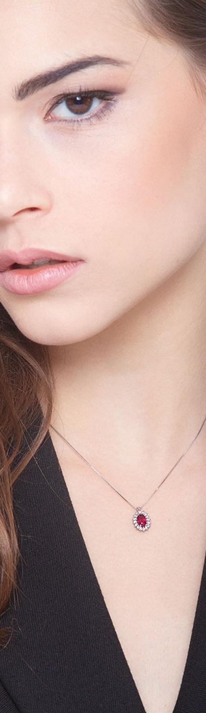 Collar halo con un rubí 6x5 mm y diamantes