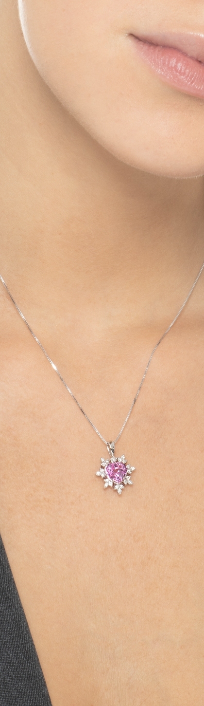 Collar oro blanco 18k forma de flor con zafiro rosa