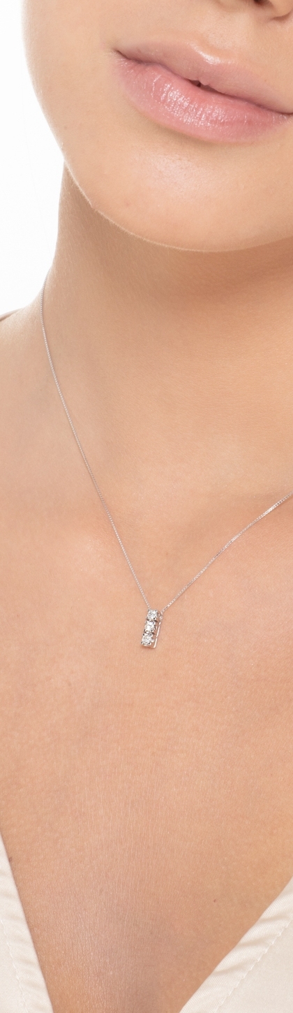 Collar en oro blanco de 18k con un colgante trilogía de diamantes