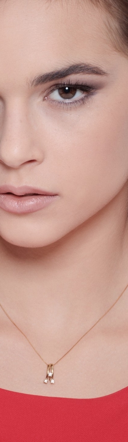 Collar oro amarillo 18k con colgante trilogy diamantes ct. 0,15