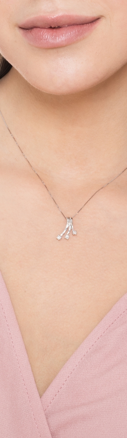 Collar Oro Blanco 18k con colgante Trilogy y brillantes