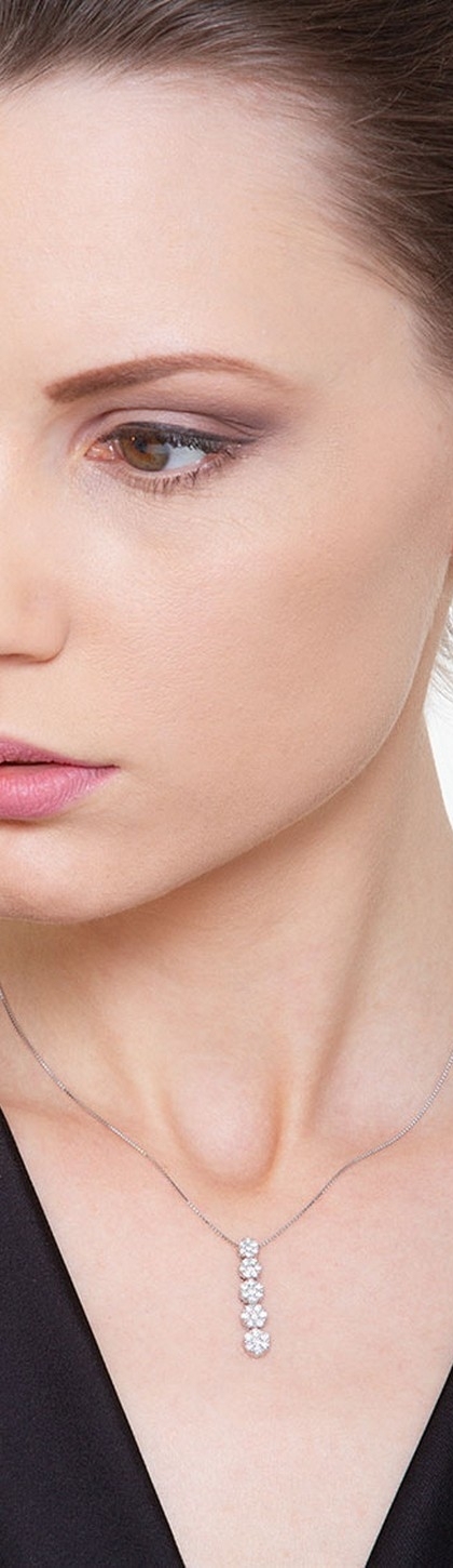 Collar con cinco colgantes ilusion en oro blanco de 18k con diamantes