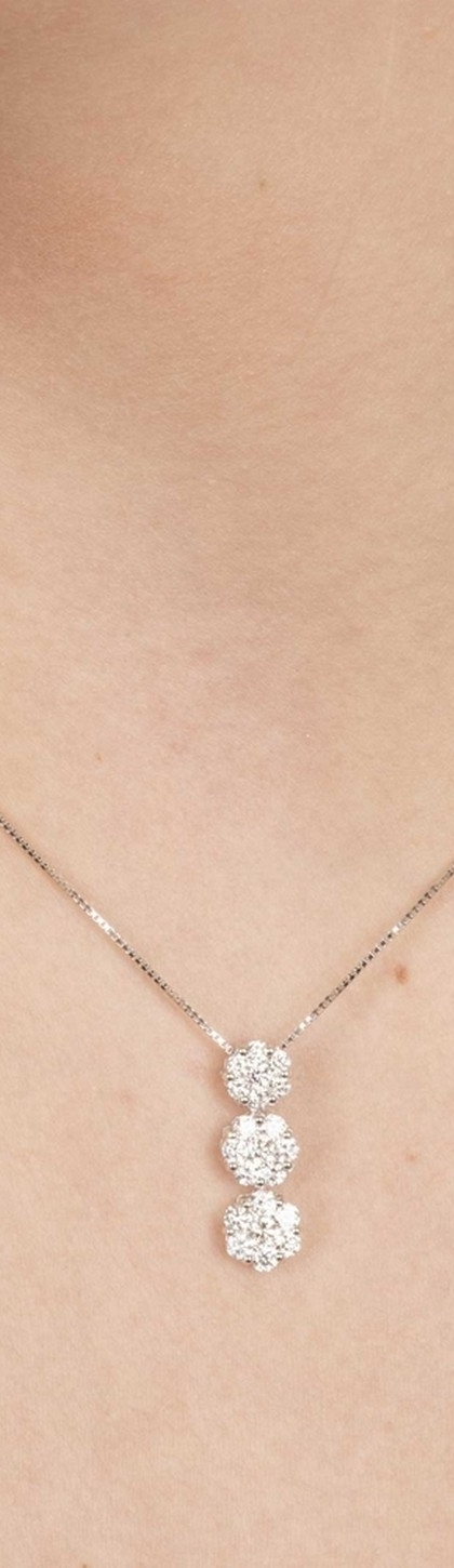 Collar de 3 colgantes en oro blanco de 18k con diamantes