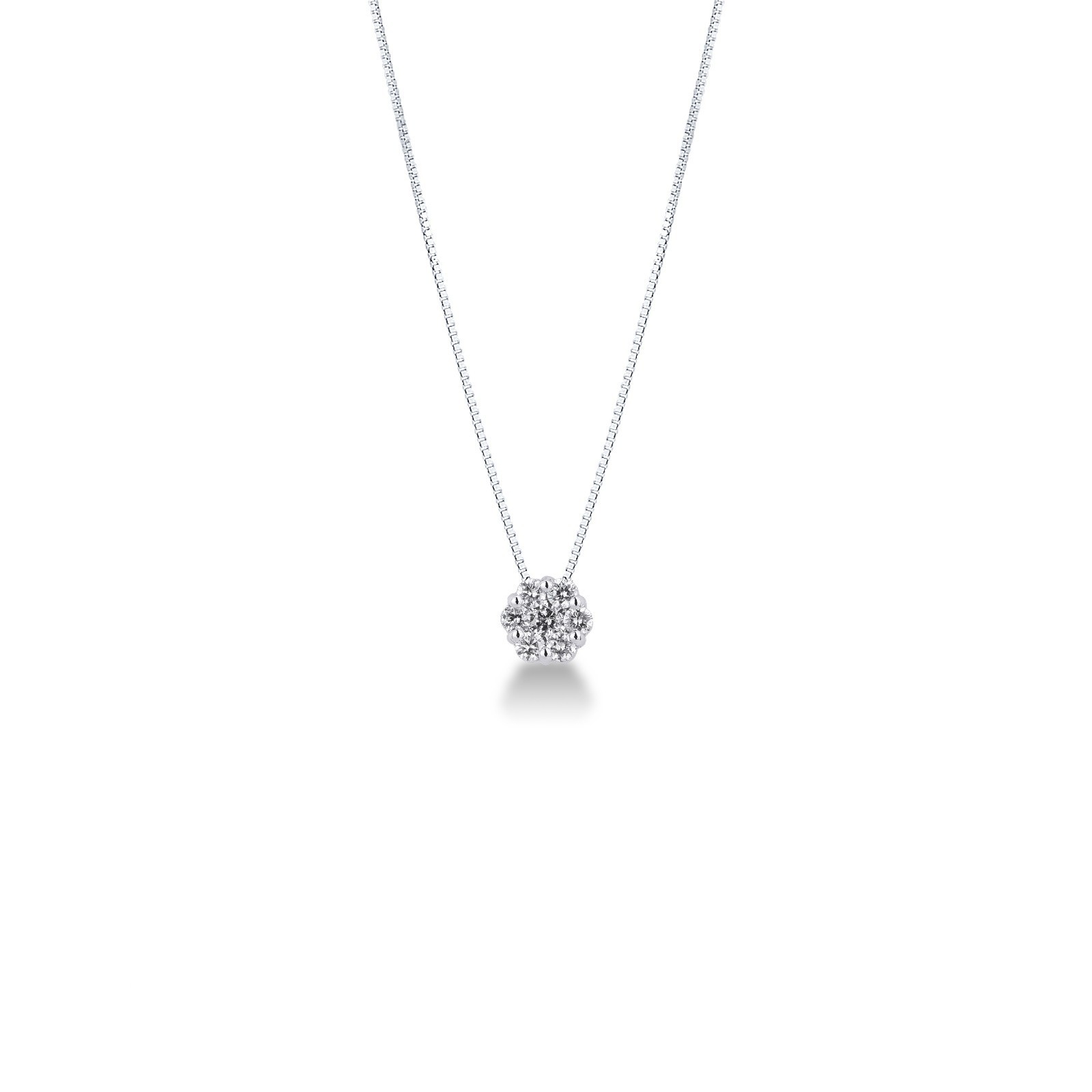 Collar en oro blanco 18k con flor en diamantes