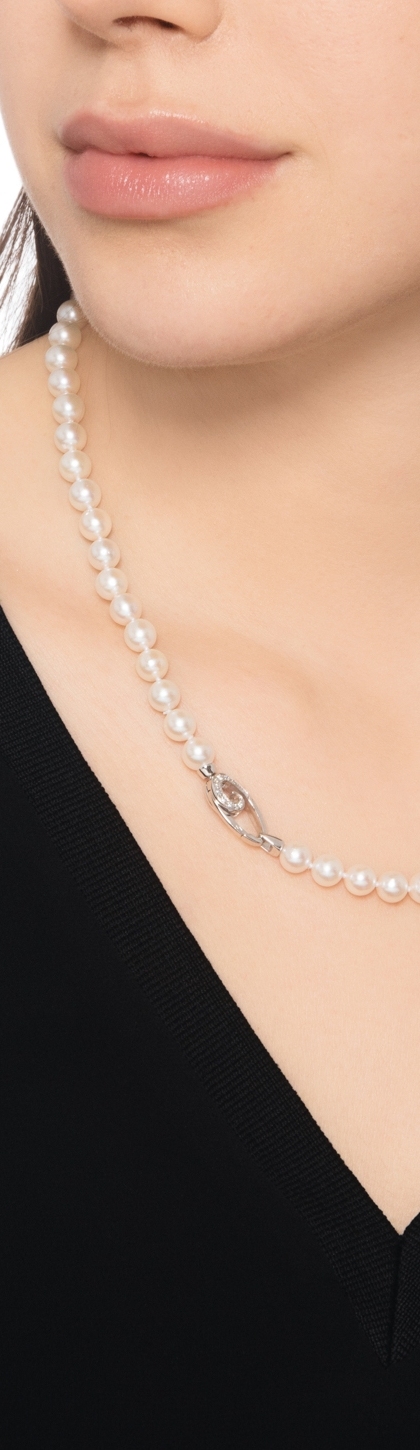 Collar de perlas japonesas con cierre oro blanco y diamantes