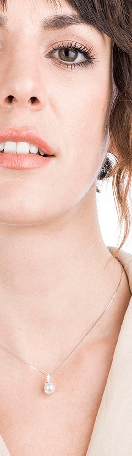 Collar en oro blanco 18k con diamantes brillantes y perla natural 7 mm