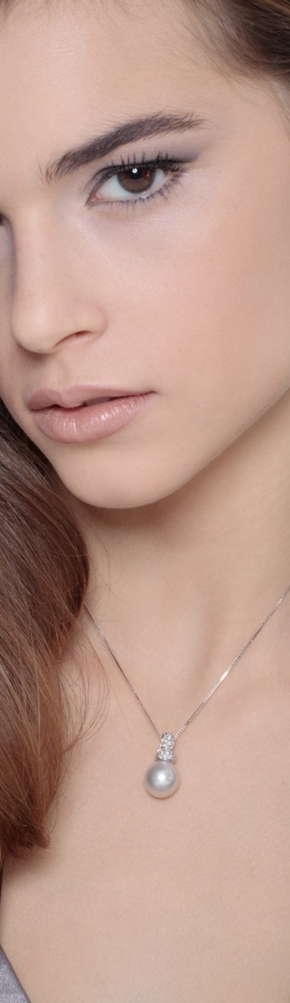 Collar en oro blanco 18k con diamantes perla natural cultivada
