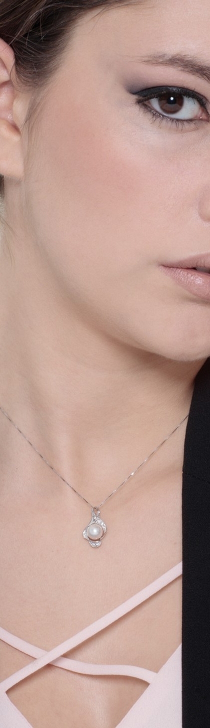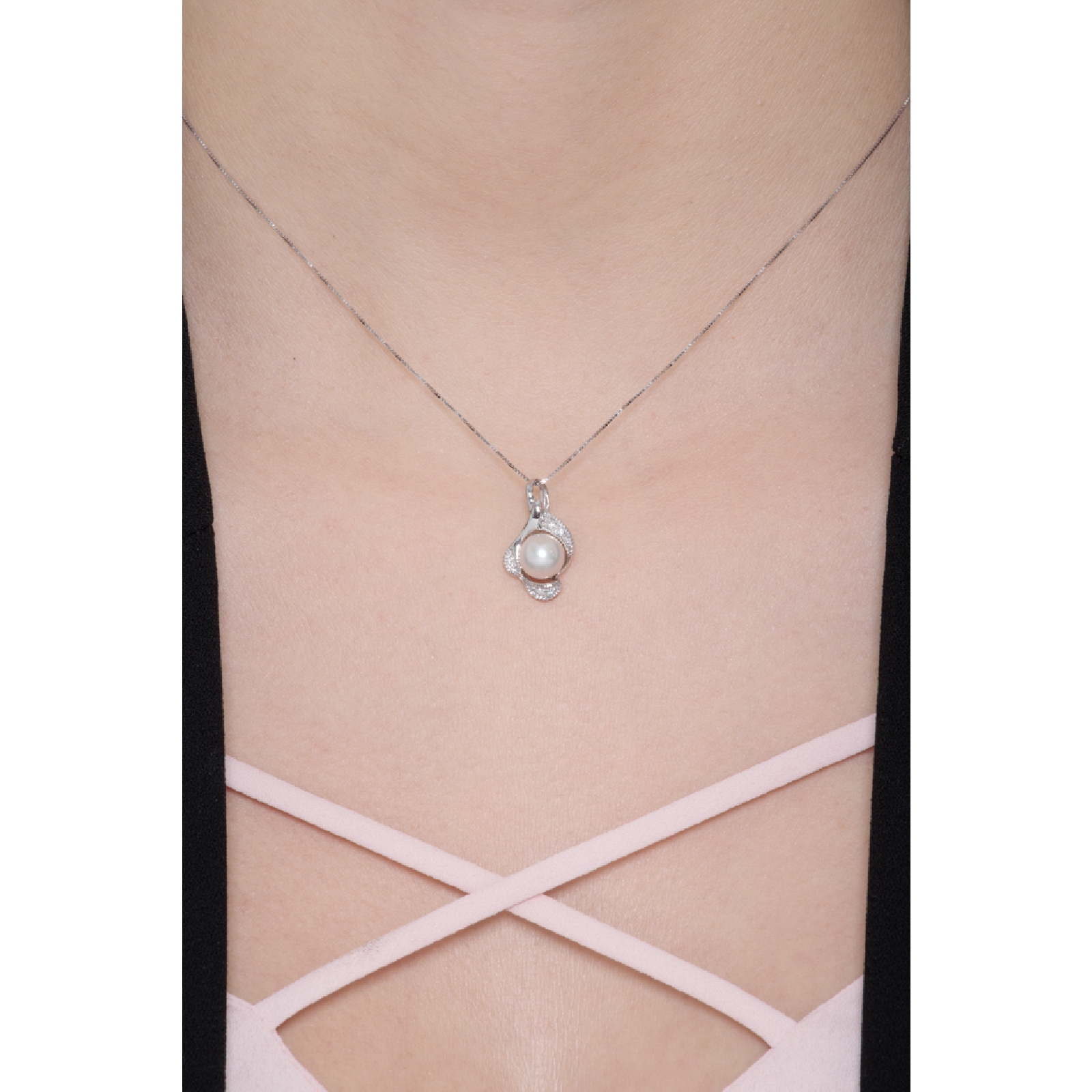 Collar en Oro Blanco 18k con Diamantes y Perla Natural