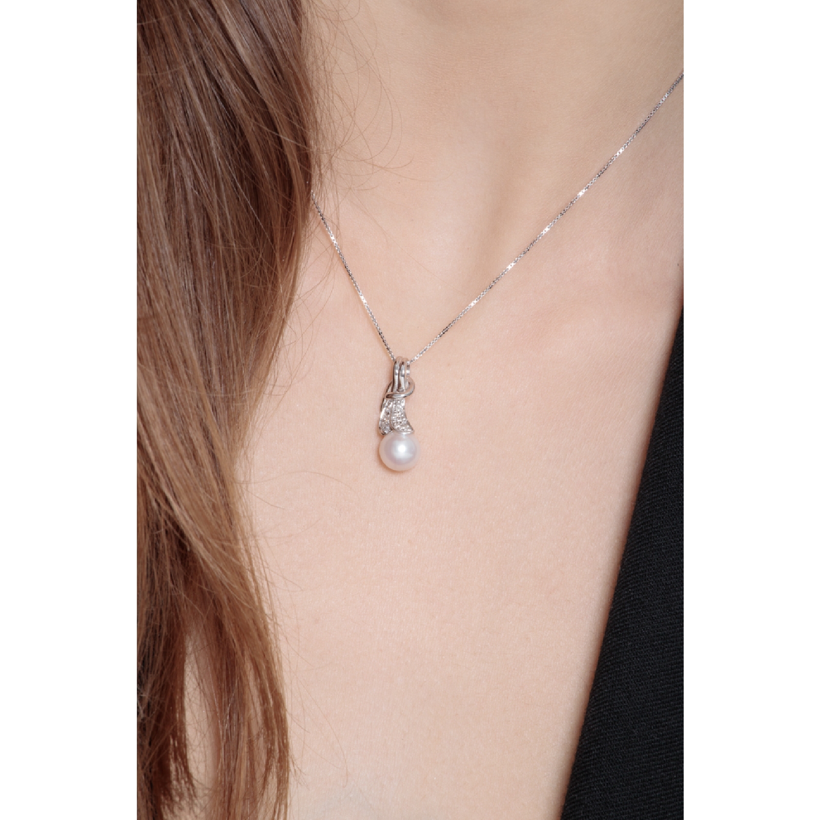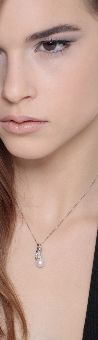 Collar en oro blanco 18k con diamantes y perla