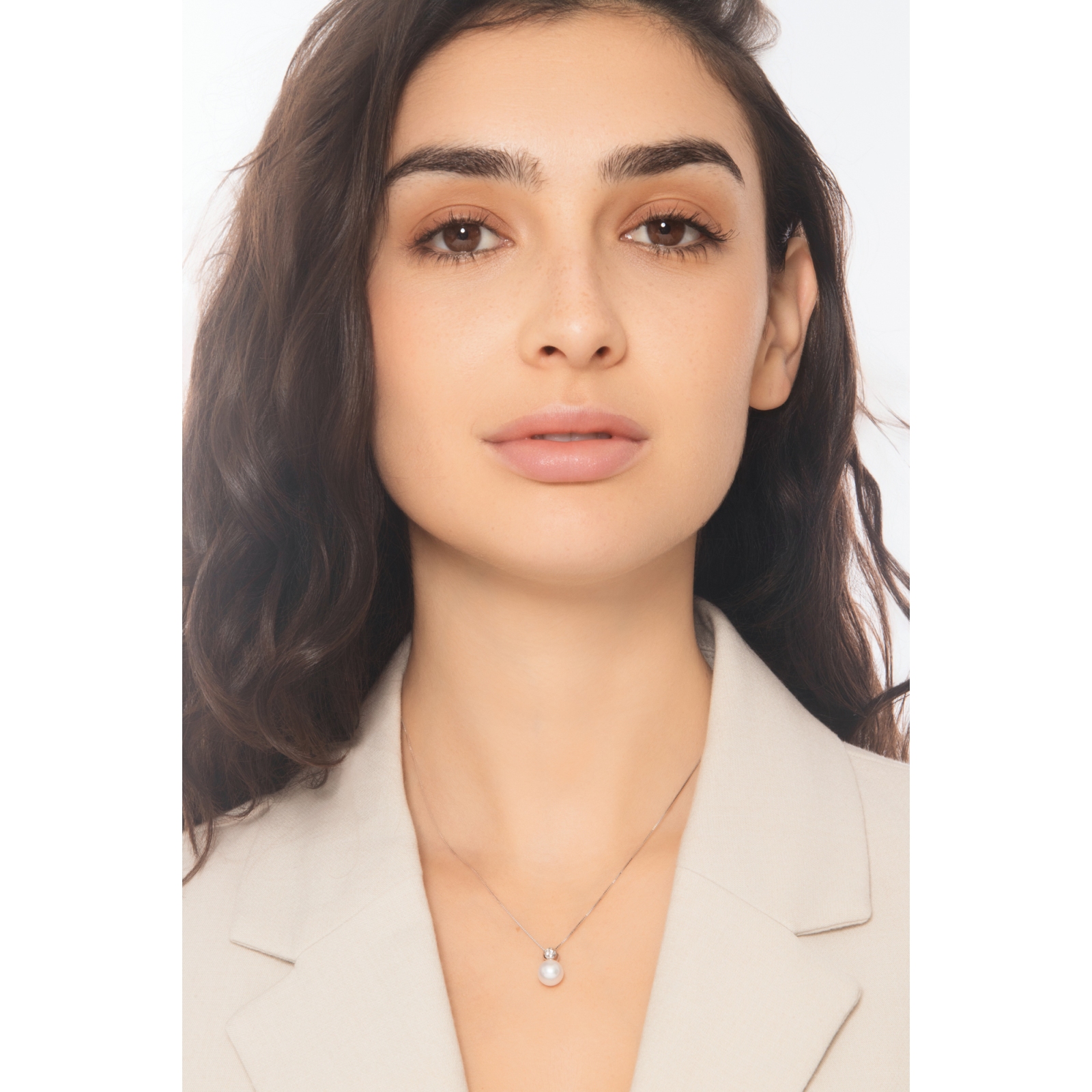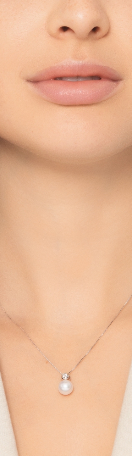 Collar en oro blanco 18k con perla natural y diamante brillante