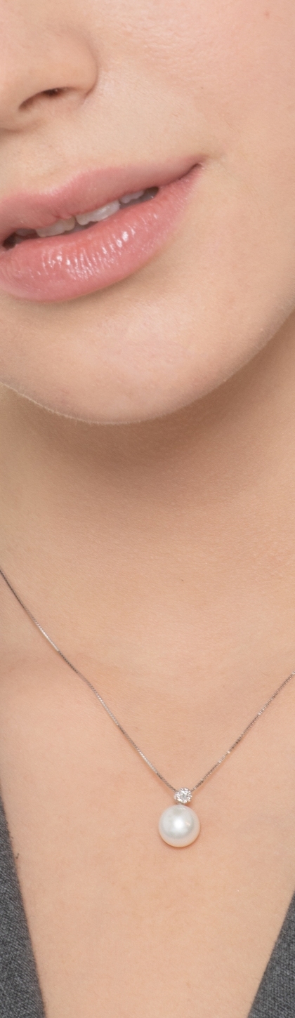Collar en oro blanco con perla natural de 8 mm y diamante