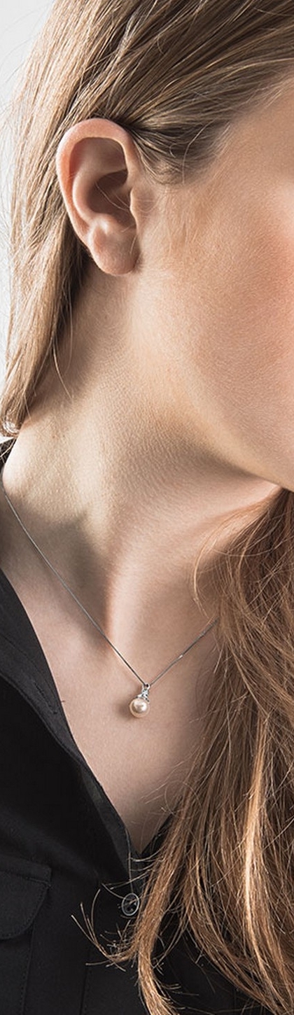 Collar mujer en oro blanco 18k con perla natural y diamantes