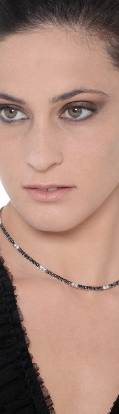 Collar rivière en oro blanco de 18 quilates con diamantes blancos, negros y puntas brunidas
