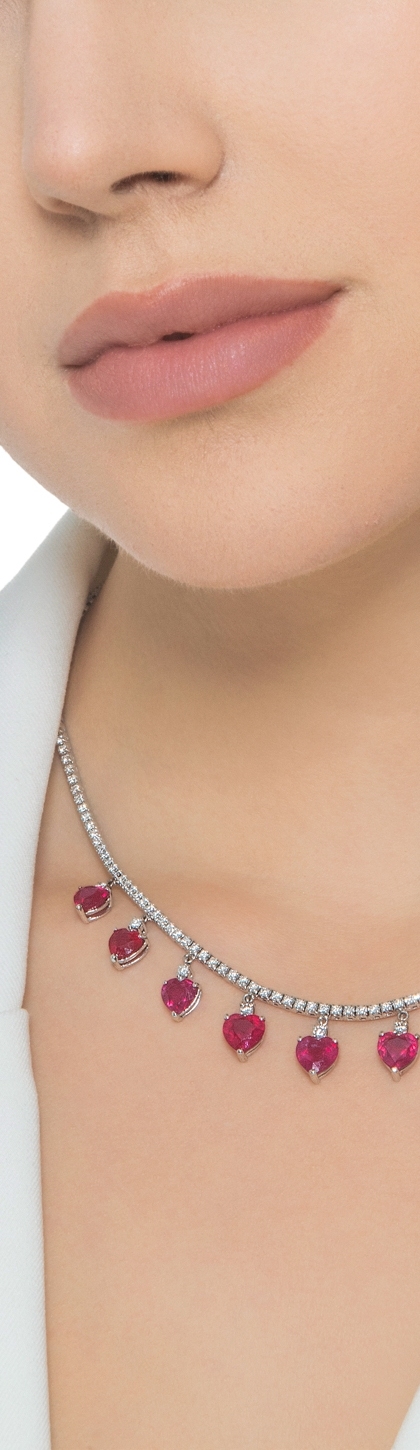 Collar tenis en oro blanco 18k con colgantes de rubí