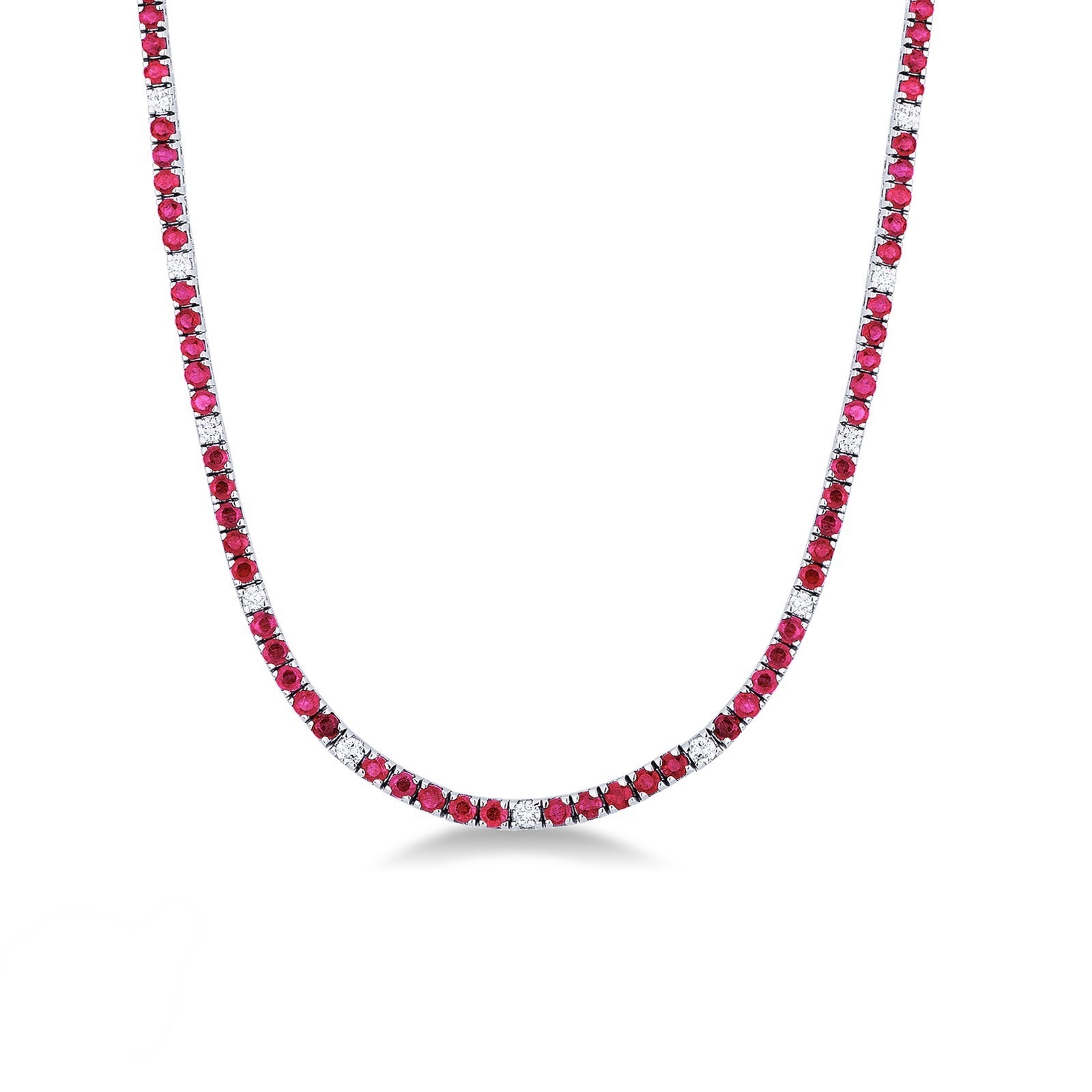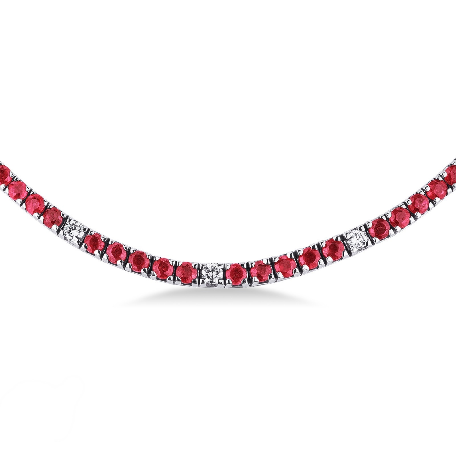 Collar tennis en oro blanco 18k con rubíes y diamantes