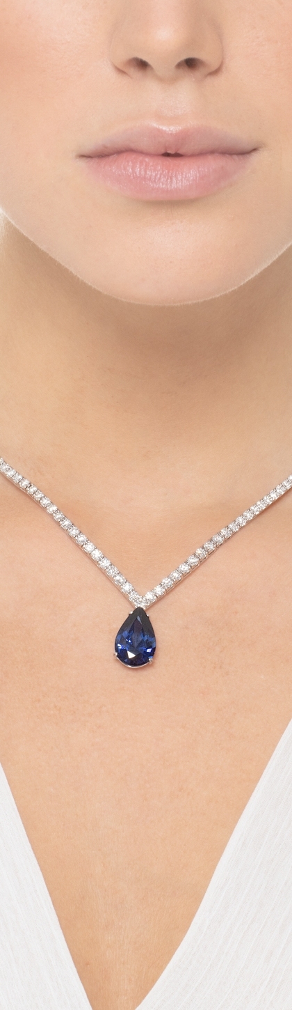 Collar tennis en oro blanco 18k con zafiro azul 12x18 mm y diamantes