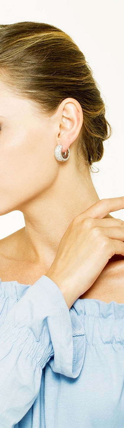 Aros en Oro Blanco 18k con Tres Filas de Diamantes ct. 2,60